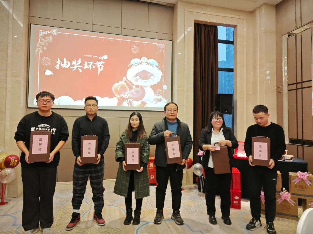 在節(jié)目表演過程中,還穿插了激動人心的抽獎環(huán)節(jié)。三輪抽獎,驚喜連連。多種多樣的獎項,每一位同事都收獲了屬于自己的那份幸運。抽獎的每一次揭曉,都伴隨著陣陣歡呼與掌聲,將年會的氛圍推向了高潮。豐厚的獎品讓員工們驚喜連連,歡呼聲不斷。