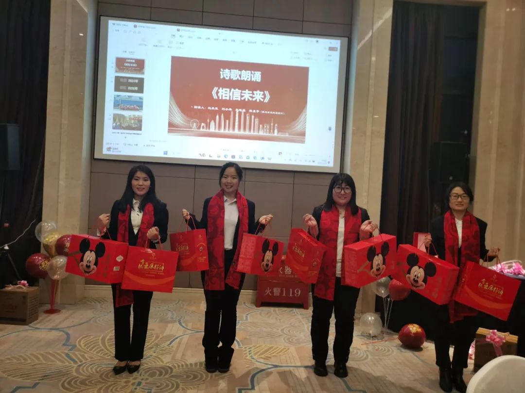 年會現(xiàn)場,員工們自編自導(dǎo)自演的節(jié)目精彩紛呈,形式多樣,涵蓋了朗誦、歌曲、舞蹈、二胡等多種藝術(shù)形式。現(xiàn)場氣氛熱鬧非凡。貼心的人事行政部為每一位表演者送上精美禮品。