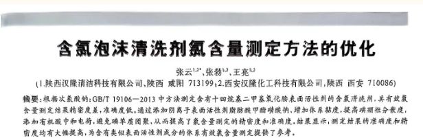 3、張云、張勃、王亮在《化工管理》雜志發(fā)表論文《含氯泡沫清洗劑氯含量測定方法的優(yōu)化》