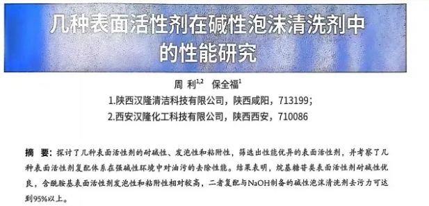 4、周利、保全福在《中國洗滌用品工業(yè)》雜志發(fā)表論文《幾種表面活性劑在堿性泡沫清洗劑中的性能研究》